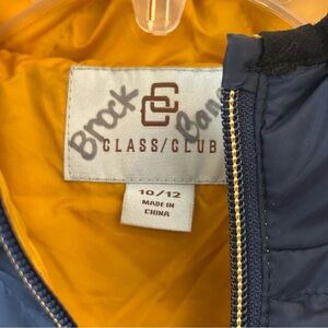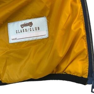 Navy jacket by Class Club. Features a vibrant gold lining.