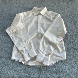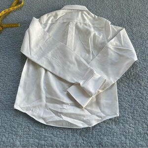 This white on white classic dress shirt appears to never have been worn. Original creases from being in packaging are still evident. Elevate your wardrobe with this classic white men's shirt. Perfect for any occasion, this shirt offers a timeless look and comfortable fit.