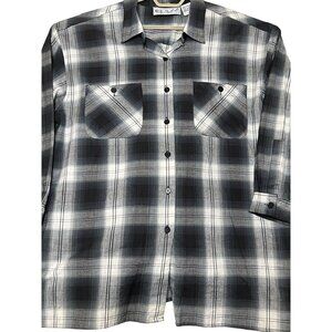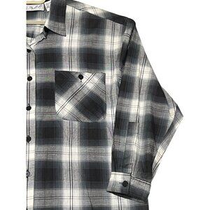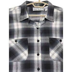 Class by Just Class Women Plaid Long Sleeve Button-Up Shirt Size L Black & White 2 Pockets