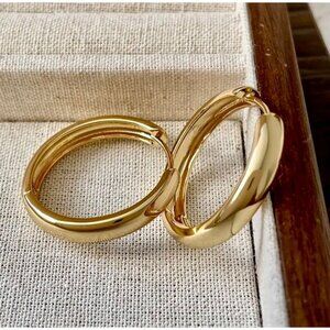 These are just a nice pair of 18K Gold Plated hoop earrings that'll be good for wearing every day since they go with pretty much everything. They feel really light, so you probably won't even notice them once they're on, and you don't have to worry about them bothering your ears like some cheap jewelry does. I got a different size and don't need this pair, so hopefully they can be a simple, reliable addition to your regular rotation.
