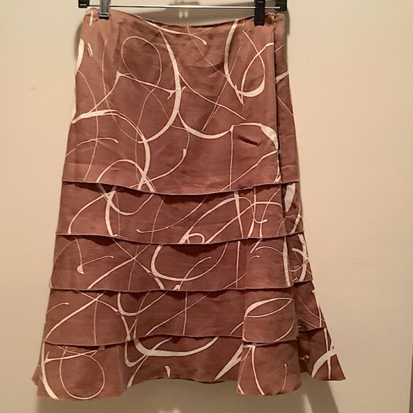 This classic Acorn Cinnamon Sassy tiered Linen Flared Skirt in size 14 features a side zipper.