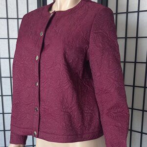 Classic Anne Klein Quilted Floral Embroidered Jacket Burgundy Long Sleeve Sz PL