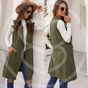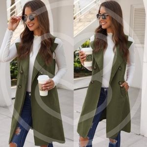 Classic Army Green Button Pockets Waterfall Vest