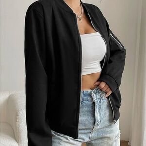 Discover timeless style with this classic black bomber jacket. Perfect for layering, it combines comfort with a sleek design.