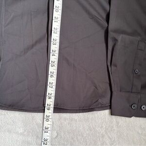 This black dress shirt is crafted from premium materials, offering a sleek and polished look ideal for formal settings. Its classic design ensures a refined appearance, making it a versatile addition to any wardrobe.