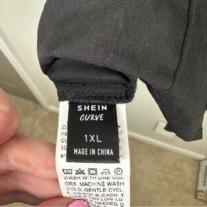 🌿 SHEIN Puff Sleeve Cutout Back with tie, Black Tiered Ruffle Hem, Tier Layered Dress Women's Plus Size 1XL