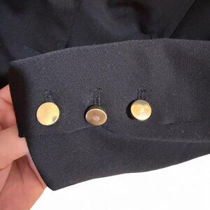 Size 22P from Eloquii. Only worn once to a party. 2 button closure, then 3 accent buttons on each sleeve. Gold buttons for all. Very flattering and casual on, gives a nice shape when you button it up. Excellent preloved condition.