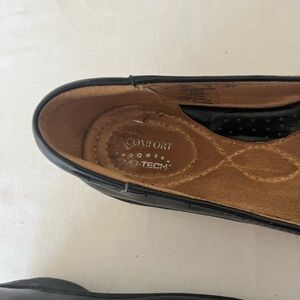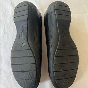 Step into timeless elegance with these black flats, crafted from smooth leather-like material and featuring a cushioned footbed for all-day comfort. Their minimalist design and rounded toe make them a versatile choice for any occasion, ensuring both style and practicality.