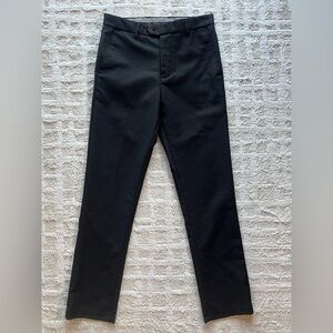 These black formal trousers feature a timeless straight-leg design, ideal for any sophisticated occasion. Crafted from a standard weight fabric, they provide both comfort and style. The deep black color ensures a versatile addition to your wardrobe.