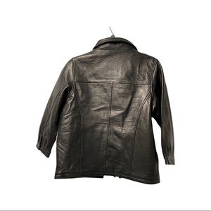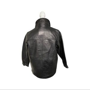Elevate your style with this classic black leather jacket. Perfect for any occasion, this jacket offers both comfort and sophistication.