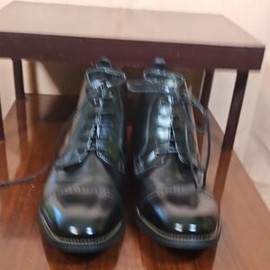 Step out in style with these classic black leather men's shoes. Perfect for any occasion, these shoes offer both comfort and elegance. Only tried on. Bought for an event and didn't go. size 8