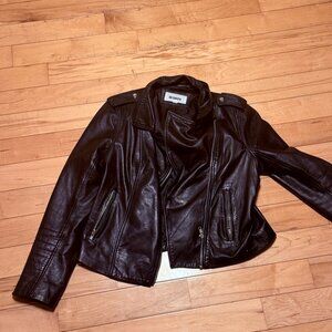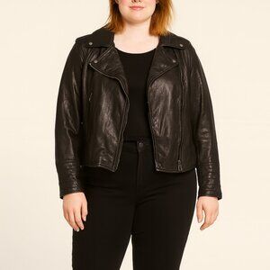 A timeless staple with a modern edge. This black moto jacket features buttery-soft faux leather, sharp tailoring, and silver hardware for a sleek, confident look. The asymmetrical zipper and structured shoulders add a touch of rebellion, while zippered pockets and subtle seaming provide both form and function. Perfect for layering over everything from jeans to dresses, this jacket instantly elevates any outfit.
