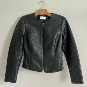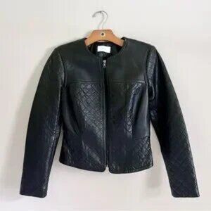 Fitted structured quilted buttery leather moto jacket lamb leather