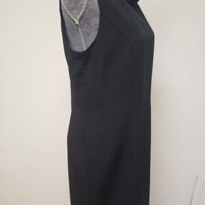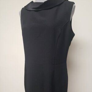 Make a quiet statement in this Jackie "O" inspired black sheath dress with black satin tie is a stunning classic. Has a back vent and is fully-lined. Measurements are: 34" long; 35.5" bust, and 37.5 at the hip.