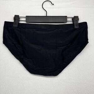 These black swim briefs offer a timeless design with their classic cut and moderate coverage. Made from durable swim material, they ensure comfort and style for any aquatic adventure. The solid black color adds a sleek and versatile touch, making them a staple for any swimwear collection.