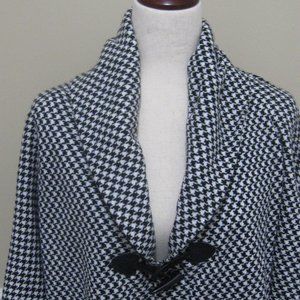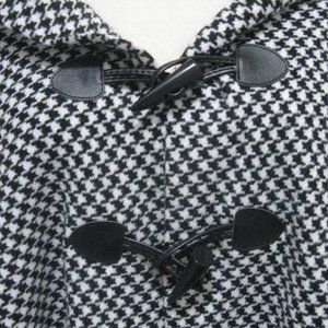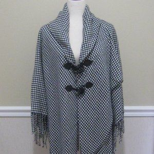 Classic Black White Houndstooth Check Fringed Wool Cape NWT