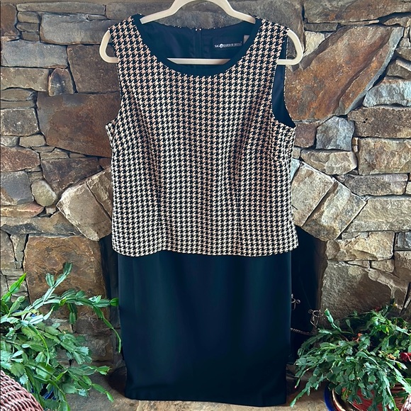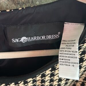 Classic dress featuring a black and cream houndstooth pattern. Perfect for any occasion. Below Knee Length Skirt; Lined; Size 12 by Sag Harbor Dress; Zipper and Slit in Back; in Perfect Condition!