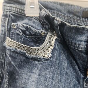 These jeans feature a timeless boot cut silhouette in a rich blue hue, perfect for adding a touch of classic style to any outfit. The denim showcases a traditional twill weave with natural fading and distressing, offering a worn-in look that enhances their casual appeal. Ideal for everyday wear, these jeans combine comfort with a touch of vintage charm.