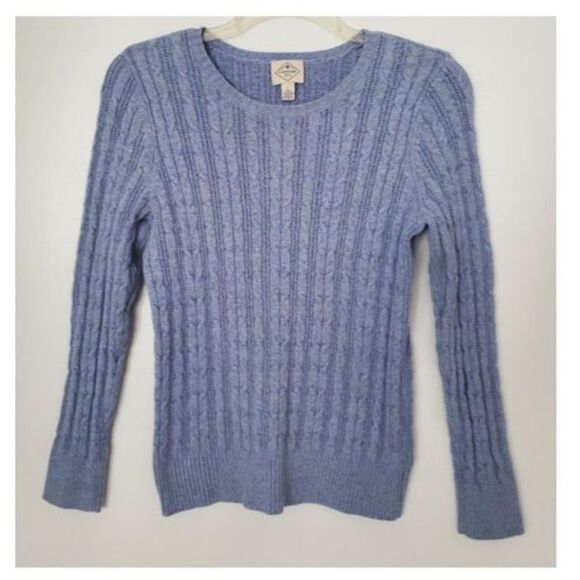 Classic Light Blue Cable Knit Sweater St Johns Bay Cotton Blend Sz L