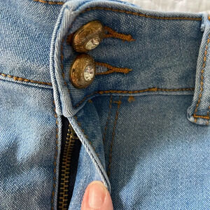 Discover timeless style with this classic blue denim pencil skirt. Perfect for any occasion, it offers a sleek and versatile look. Small stain barely noticeable. See last photo.