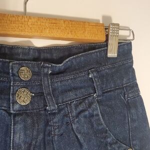 Stradivarius Shorts Womens Size 6 Blue Classic Denim Jean Double Button at waist Pleat pleated
