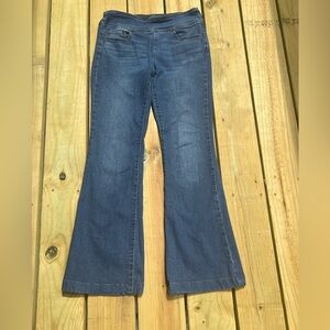 Elevate your style with these classic blue flare jeans. Perfect for any occasion, these jeans offer a timeless look and comfortable fit.