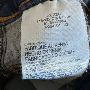 Elevate your style with these classic blue girl's skinny jeans. Perfect for any occasion, these jeans offer comfort and a timeless look. There are a few spots on the front legs, shown in photos.