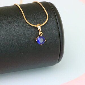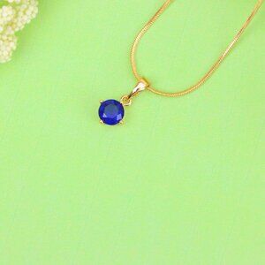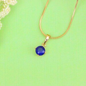 "Classic Blue Round Pendant in Gold Plating Dainty Accent, XPPT1832