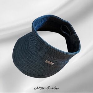 This blue sun visor hat is crafted from a ribbed, stretchy material, offering a comfortable fit. Its open-top design and extended visor provide excellent sun protection while maintaining a casual, athletic style. The adjustable band ensures a secure fit for any outdoor activity.