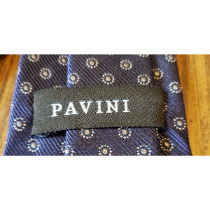 Classic Blue With Silver Button Pattern Pavini Extra Long Geometric Necktie Tie