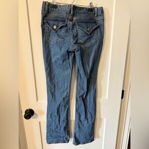 Elevate your wardrobe with these classic blue women's jeans. Perfect for any occasion, these jeans offer both style and comfort.The inseam is 32 in.