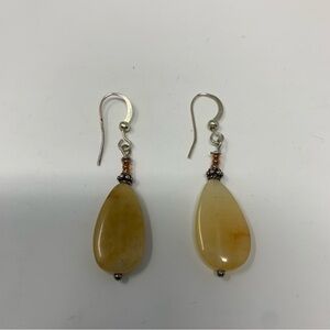 Classic Boho Yellow Genuine Citrine Stone Teardrop Dangle Earrings Silver Tone