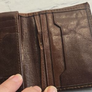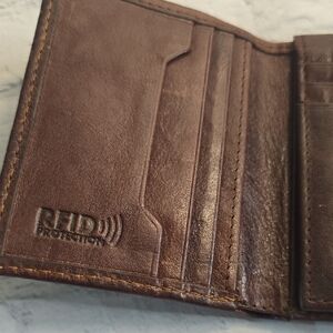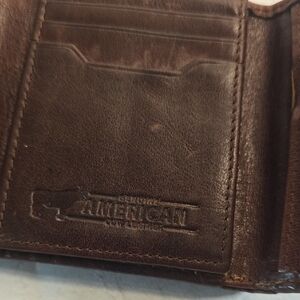 Genuine American cow leather wallet is perfect for the modern man. Crafted with quality materials, it offers both style and functionality. Ideal for everyday use. RIFD. Brown Leather. Cleaned and conditioned.