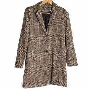 Classic Brown Plaid Jacket Mid Length Blazer Small