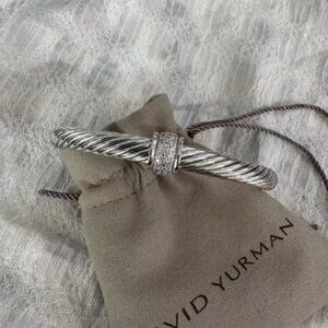 Classic Cable Station Bracelet Sterling Silver with Pavé Diamonds