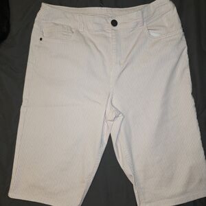 Get ready for sunny days with these classic Christopher & Banks shorts. They feature a sophisticated light stripe design and a comfortable fit, making them a wardrobe staple. These shorts are a size 14P and come equipped with front and back pockets, a button, and a zipper closure. They're in excellent condition.
