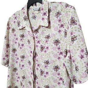 Classic Collection Shirt For Women 1X White Floral Hidden Buttons Lightweight