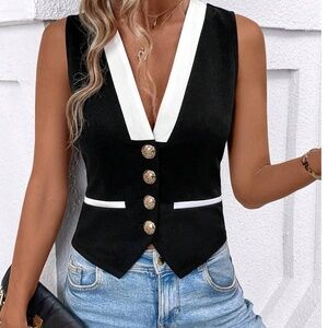 Classic Color Block Button Fitted Vest
