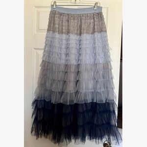 Classic Color Block Stretchy Waist Layered Tulle Maxi Skirt