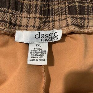Classic Concepts Plaid Brown/Beige Elastic Waist Pants 2XL Polyester/Spandex Str