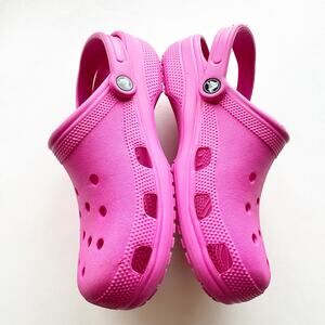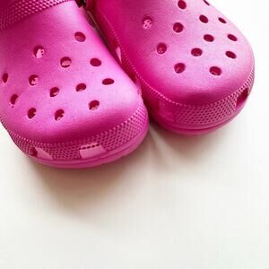 Bright hot pink Crocs Classic Clogs, size W10 / M8, in excellent condition. These iconic slip-on shoes are lightweight, water-friendly, and easy to clean, making them perfect for everyday wear, beach trips, gardening, or casual outings.