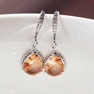 "Classic Crystal Champagne Water Drop CZ Silver Earring for Women, HA4523