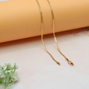 This elegant rose gold necklace features a classic curb chain design, perfect for adding a subtle shine to your everyday look. Made from gold-plated high-quality brass for lasting beauty and durability.
