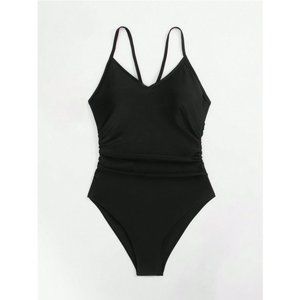 Classic Cut Out Ring Linked One Piece Swimsuit black