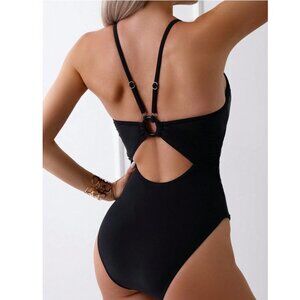 Classic Cut Out Ring Linked One Piece Swimsuit black