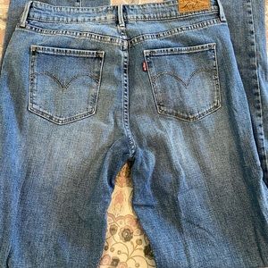 Classic Levi’s straight leg Deni curve Levi’s. These are timeless and the wash/fade is a masterpiece. A little lighter down center thigh. Great traditional Levi’s pocket stitching that are flattering to any physique. Fabulous condition. Will be your ‘go to’ jeans. Size 10 or 30.