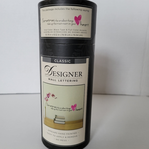 Designer Wall Lettering says "Sometimes the smallest things take up the most room in your heart." Brand new never even opened the container.