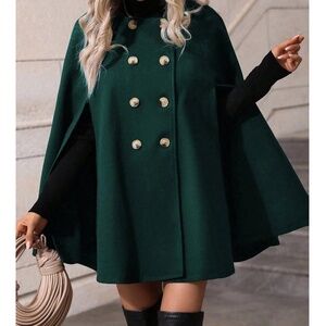 Classic Double Button Cape Sleeve Loose Fit Jacket Coat