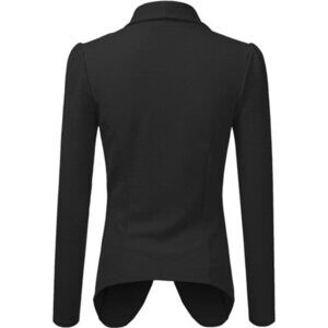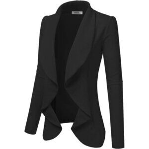 *Style note - Doublju lends a perfect finish to your daily looks in this open-front blazer with a long sleeves and ruffle front detail. Whether you're dressing up a pair of jeans or adding a layer of sophistication to your business-ready look, the sleek silhouette and unrestrictive stretch performance of this blazer make it the perfect choice for professional style and comfort.