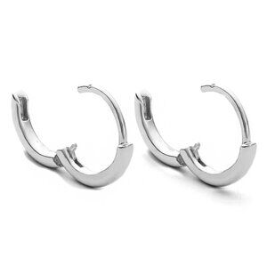 Classic Elegant Pure Solid 925 Sterling Silver White Gold Small Hoop Earrings